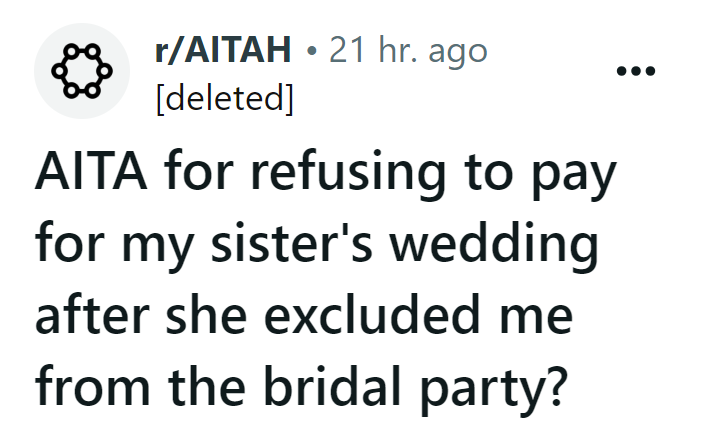‘You’re not the Maid of Honor Anymore’: Woman Decides Her Friend is More Important Than Her Sister in Her Wedding, But Still Expects Demoted Sister to Pay for Wedding Expenses
