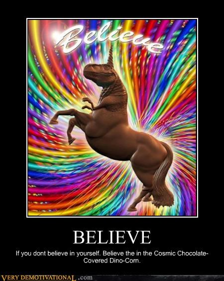 BELIEVE if you don't believe in yourself, believe in the cosmic chocolate covered dino-corn