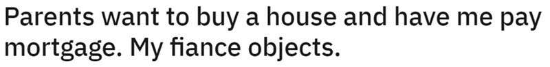 ‘We're not paying for your house’: Parents demand their son pay their mortgage while promising he will inherit the house in return, son's fiancée refuses, leading to a family dispute