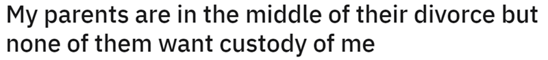 ‘Neither of us wants you’: Adopted 15-year-old kid confronts divorcing parents after they admit neither of them wants to take custody of him