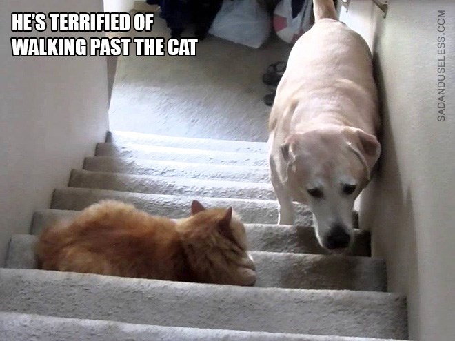 Sometimes Dogs Are Just Intimidated by Adorable Cats