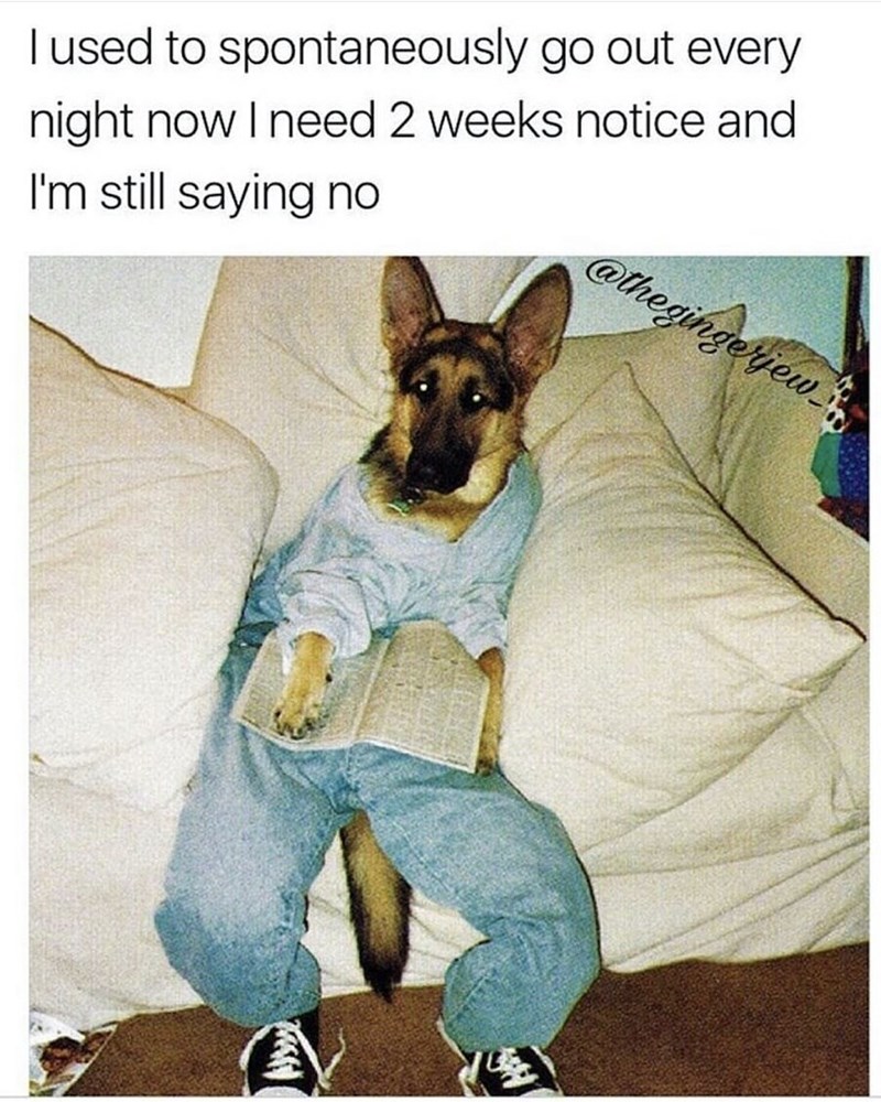 Yeah, even with advanced notice, we're probably still not going out. We're not in our early 20's anymore. We're not even in our 20's at all anymore. Those days have gone and passed long ago. You should have called us a few years ago.