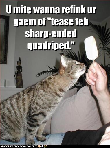 U mite wanna refink ur gaem of "tease teh sharp-ended quadriped."