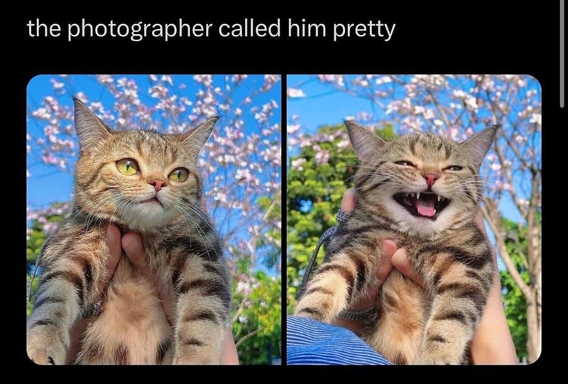 He was already such a well-behaved catto before being called pretty with that cute little smile, and then he was called pretty and put on the sweetest prettiest face known to feline kind. If only we were all so lucky to have such as sweet cat child waiting for us at home. He looks like he does not even yell for food.