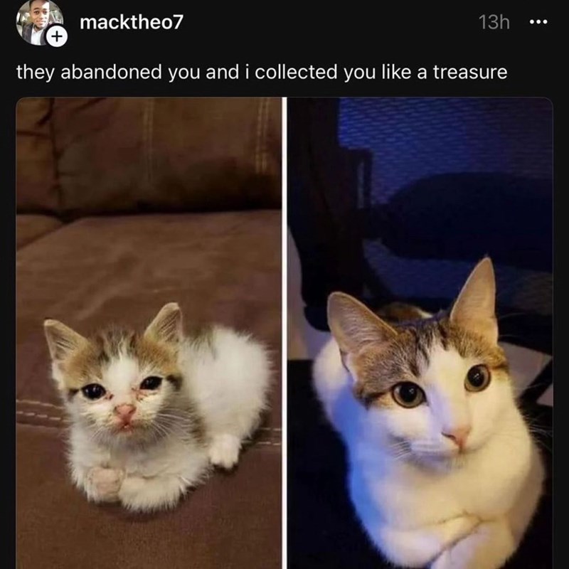 A reminder that it is never too late to become the best version of yourself, and while sometimes you may slip and regress, there is always the opportunity to come back from anything in this life. Sure, it helps a lot if you look like a cute cat, but hapless hoomans can do it too.