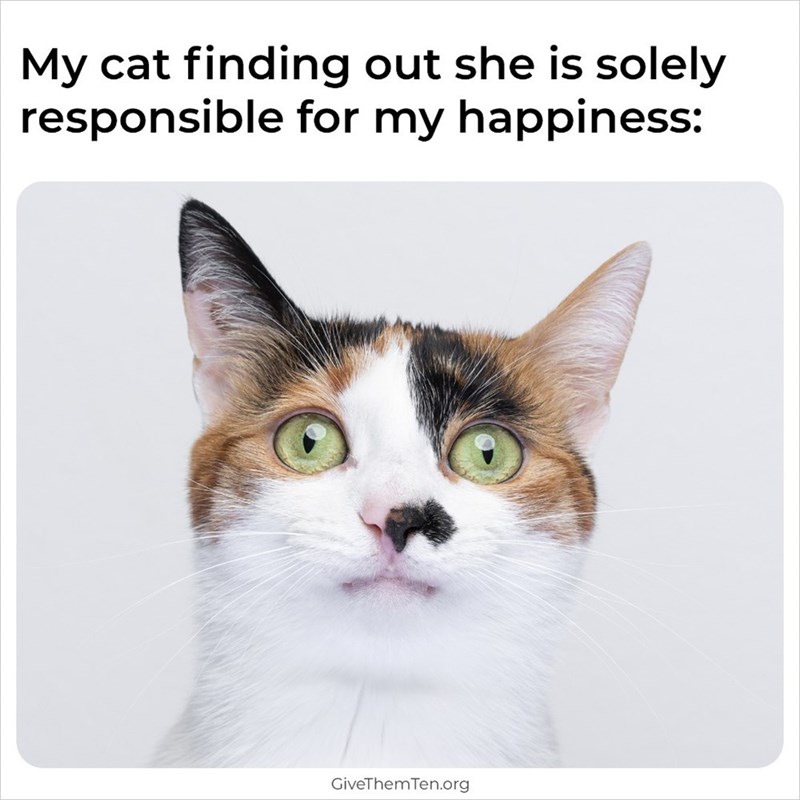 This is a solid warning to all you feline pawrents, you can go ahead and burden you cat if you feel that they could handle the weight of the responsibility. However, you might choose to spare them from the madness and instead let them live their happy lives that make you happy.
