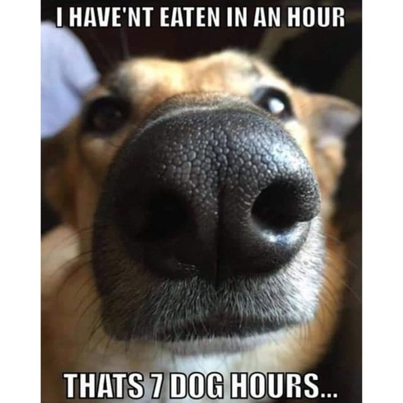 While in this context, this is a completely legitimate argument to get more food. Heck, if we have not eaten for seven hooman hours, we would be famished. But if we were to use this ourselves, we would get to turn the silly meter up to ten. Or better yet, depending on our level of hunger, we could choose different animal timescales to convey our need for food.