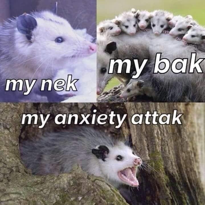 If there was ever a meme to describe us, it would have to be this one. We also carry around our babies on our backs (if you count our emotional problems as babies), and we also have anxiety attacks. It's like this meme was made for us.