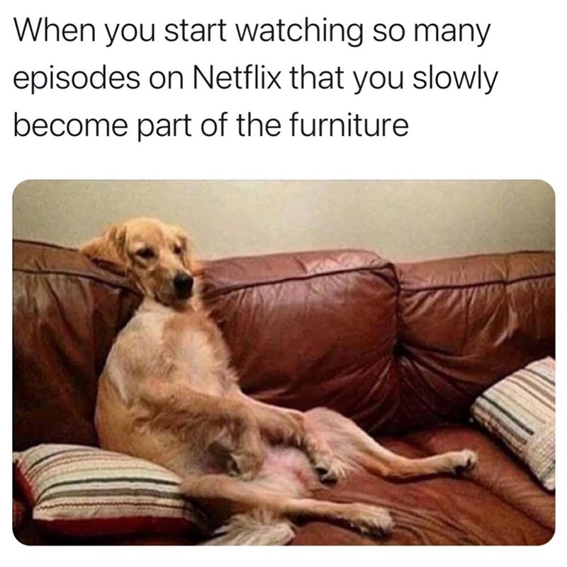 No joke - once we had a day where we stayed in and got through a whole season of Game of Thrones in one day. We got up, and ever since then, our couch has an indentation where our behind was the whole day.