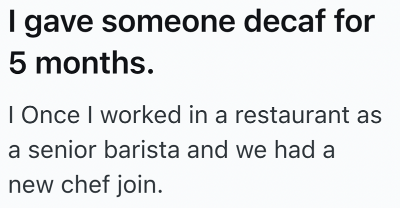 Barista gets back at unprofessional coworker by giving him decaf coffees for 5 months: 'He'd have 4 coffees and still be yawning'
