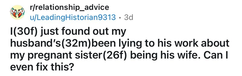 Man Pretends to Be Married to His Wife's Pregnant Younger Sister for Attention at Work, She Finds Out and Reveals the Truth