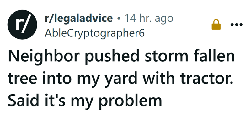 Entitled man uses tractor to push fallen tree into neighbor’s yard, declares it's their problem: 'He refuses to remove it'