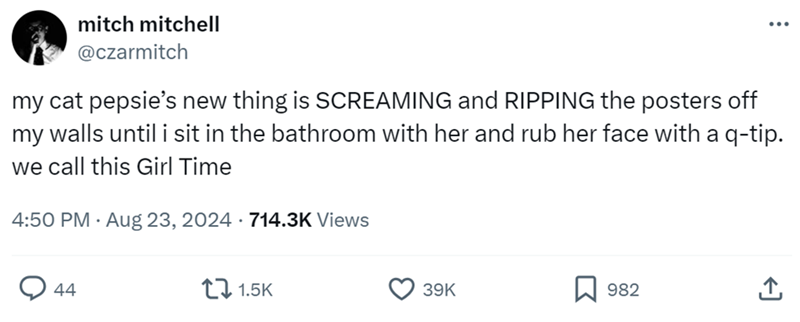 We are not mad at the cat though. Just confused. We respect the cat's tenacity. We respect that, against all odds, no matter how hard she had to work to explain herself, she has found a way to get what she wanted. That's dedication. That's aspirational.