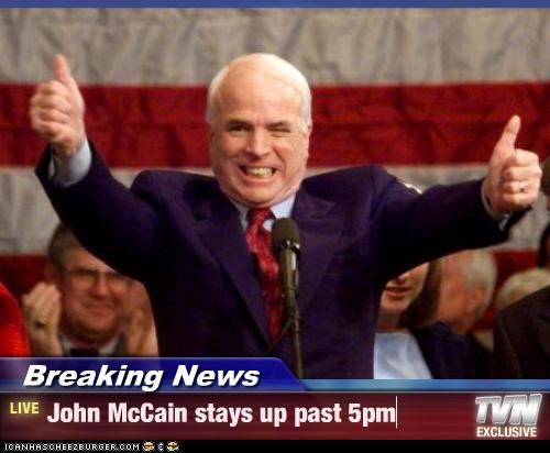 Breaking News - John McCain stays up past 5pm (John McCain)