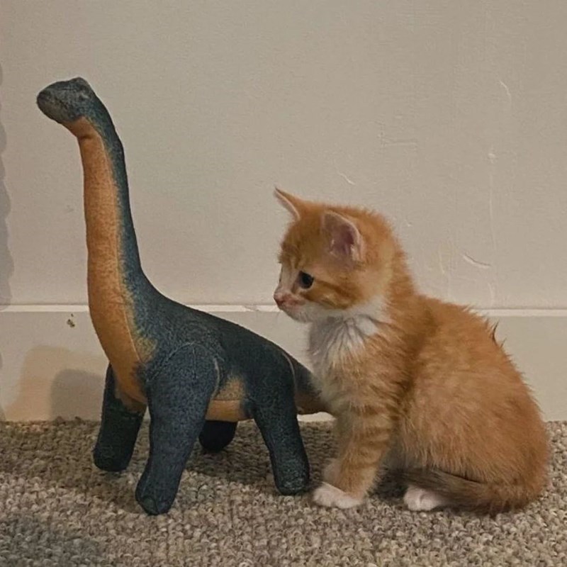 This kitten is demonstrating how cats rose to power during the dinosaur age. A rite of passage that every feline fur baby goes through while growing up. In this scene, the cute kitten is showing how his ancestors began controlling herbivorous dinosaurs and making them build cat castles. Make sure your cellphones are turned to vibrate.
