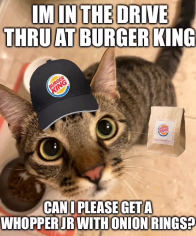IM IN THE DRIVE THRU AT BURGER KING BURGER KING CAN PLEASE GET A WHOPPER JR WITH ONION RINGS?