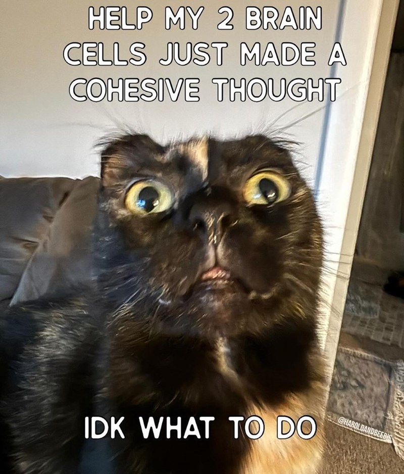 Well, perhaps this kitty is not so foolish after all. For a foolish feline would probably assume it has been fed, or failing that would turn their attention to eating some drywall or the carpet. But this clever catto has learned the ways of mind control and is using it well to solicit more food.