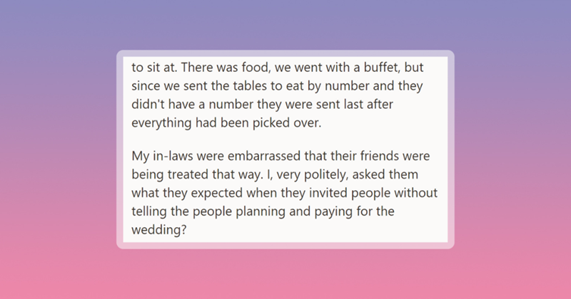 Bride Outraged After In-Laws Sneak Dozen of Strangers Into Wedding and Demand VIP Treatment