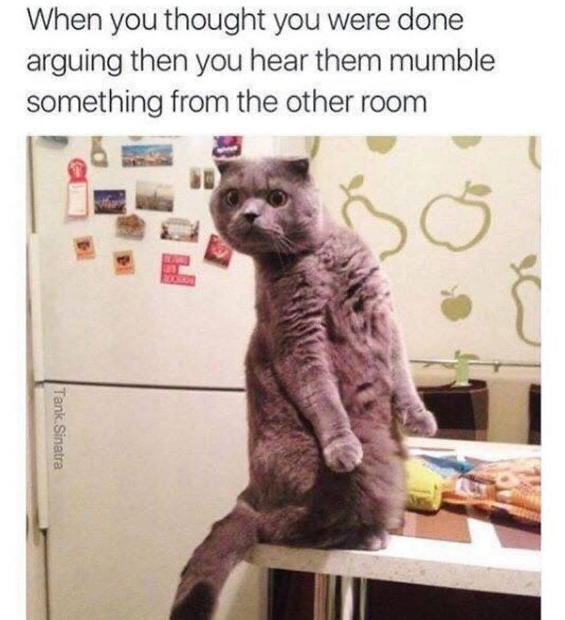 Literally the worst feeling that any feline or hooman could come across right here. Which is quite the amusing anecdote to keep in mind while your colleage is droning on through the twenty-page slideshow they put together to display the working metrics and sales figures from the last month. You can choose to be thankful that you are not covered in bin juice or simply to imagine your coworker covered in bin juice.