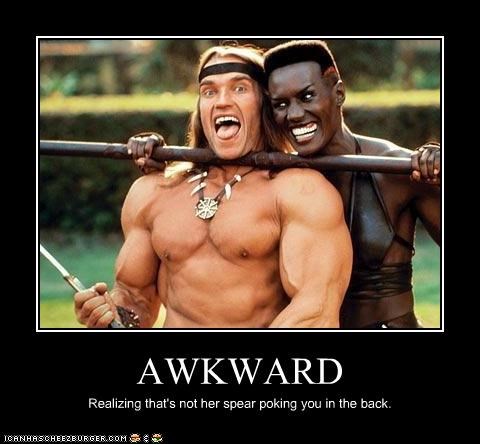 AWKWARD Realizing that's not her spear poking you in the back.