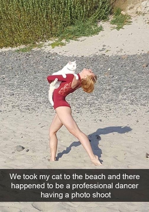 Now, we don't know who looks more magical in this picture. The dancer is, of course, elegant and beautiful, but the cat… look at the pose, look at the raised paw, look at the grace in its face. This cat knew it was being photographed, we are sure of it.
