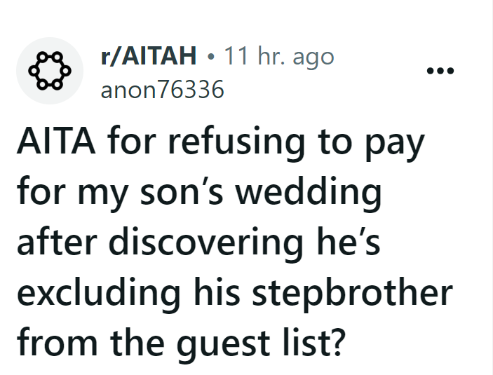 Man Excludes His Step-brother From Wedding, the Father Pulls All Funds, Sparking Favoritism Issue