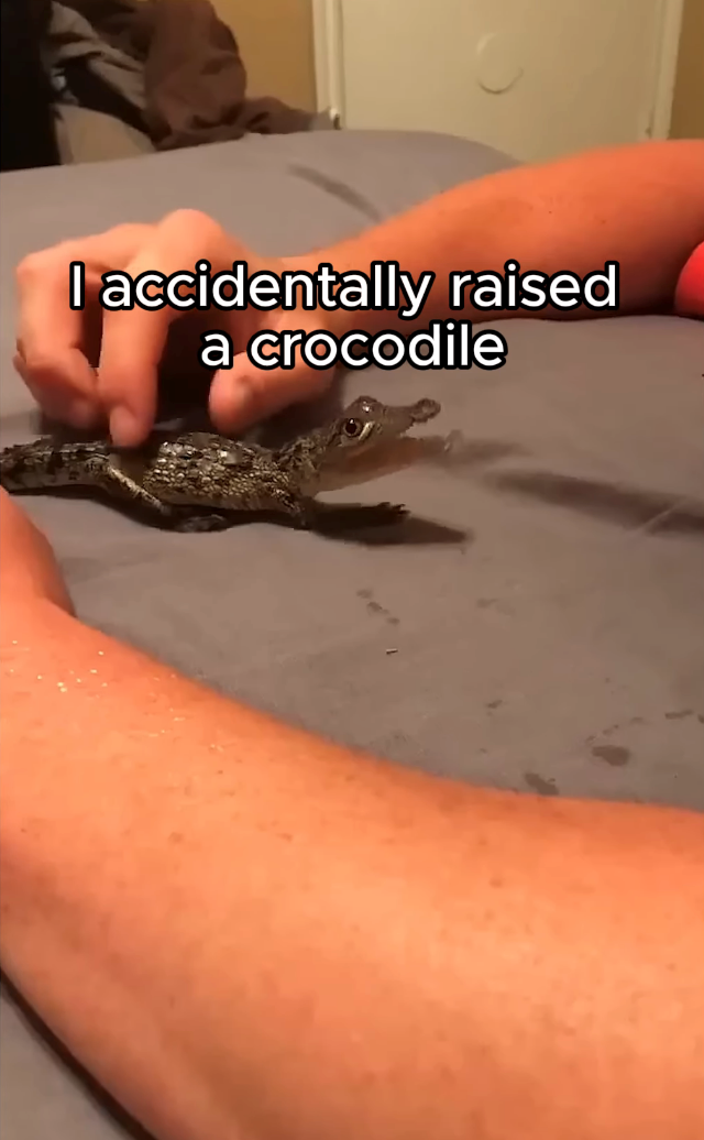 A crocodile looks like a crocodile from the time it's a baby. We're not really buying the whole "accident" part of the story, but it's wholesome and heartwarming regardless. Reptiles deserve love, too!