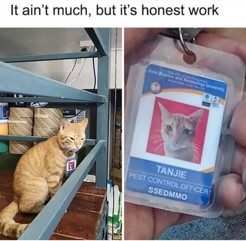 Look, just him being there is him doing you a favor, whether he controls the pests or not. Being there is bringing you joy, it's bringing you peace, and you should appreciate it all day every day. And give him snacks. Many of them. We're sure that he has earned it.