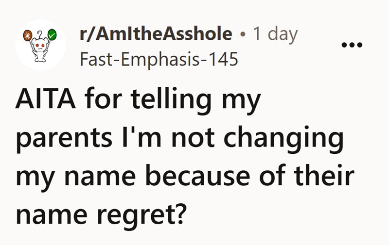 Parents Pressure 16-Year-Old Son to Change His Name After Admitting They Regret Their Choice, Son Stands His Ground