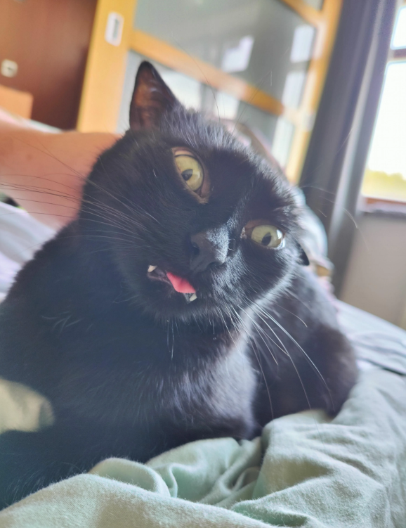 If void cats tried to mock boomers on Facebook - this would be the prime example. But, alas, this is just a regular void cat booping the front camera being very unphotogenic.