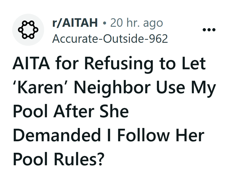 'Things got weird': Entitled Karen upset when neighbor demands she and her kids stop using his pool without consent, she responds with a list of ridiculous pool rules