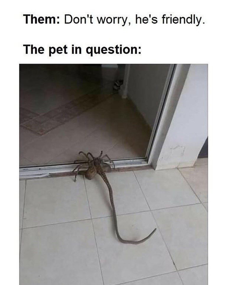 He might be friendly, but how friendly will he be when he is served with an eviction notice once the hoomans come back home. That being said, he knows how to use so much more of the house than we ever have. From hanging out on the ceilings, to creeping in the vents. The stuff of dreams, we, at least whatever dreams this creature has.