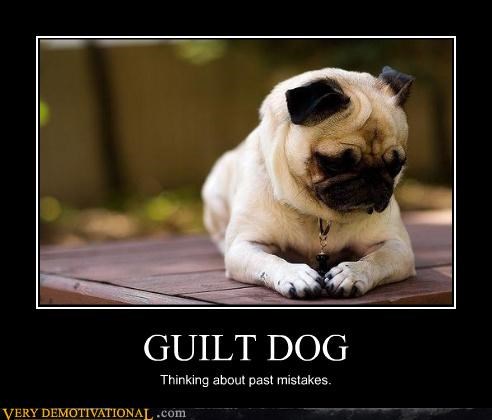GUILT DOG Thinking about past mistakes.