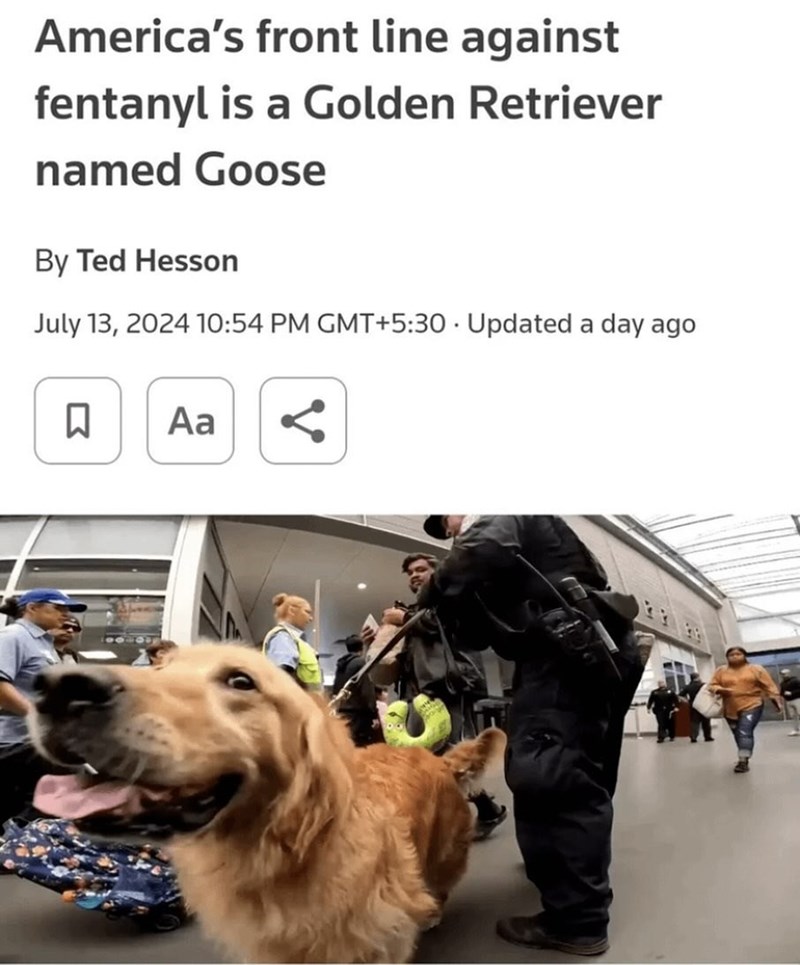 Goose is a pawfect example of the kind of good boy that we are talking about. He puts in long hours making sure that the public remain safe from the scourge of illicit drugs. And just look how happy it makes him to know that he has been doing a good job. If only we could be so proud of our performance reviews.
