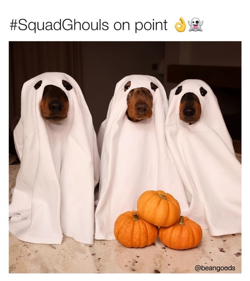 You know what they say, "Tiny ghosts come to make your day". And this collection of cute canine ghosts have certainly made our day, and we hope that their wholesome Halloween efforts have brought a smile to your face too. Otherwise, they will find you and leave you a chocolate looking present on your doorstep. They don't have arms to throw eggs…