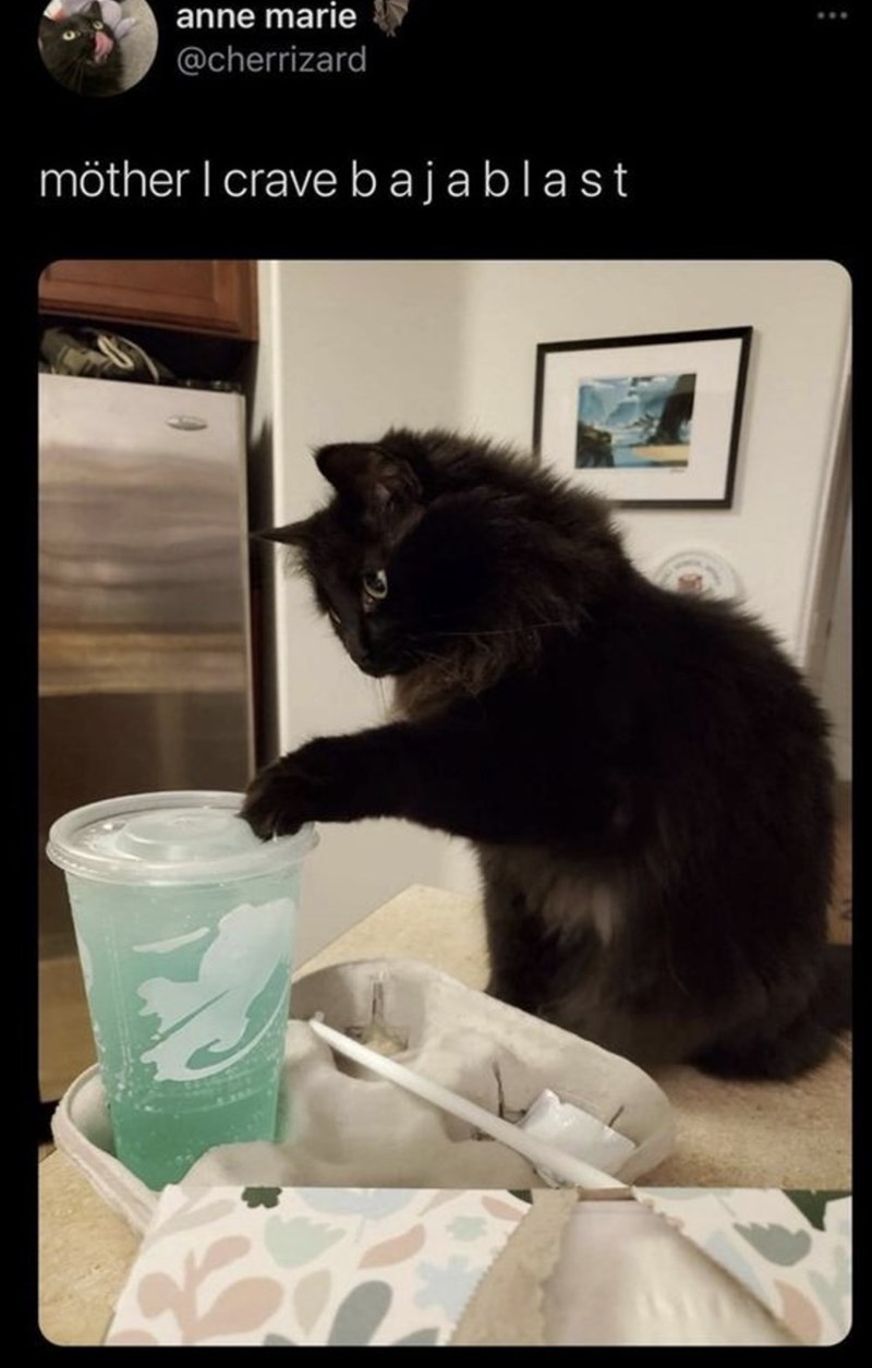 Excuse you, her möther, gib her some baja blast or we're going to baja blast that plastic cup away from you. Your void child is in a big baja blast need - do not ignore.