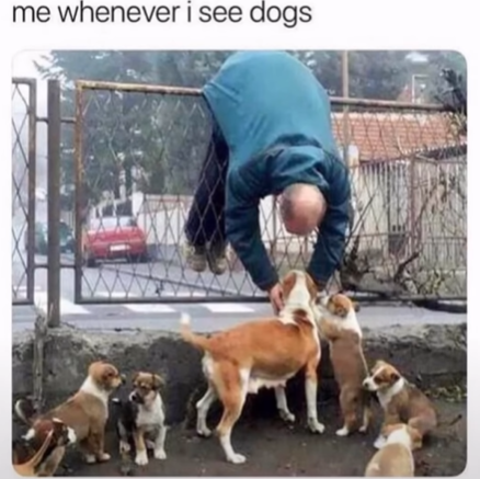 Prime example number one right here. And while the extreme joy and love that is being shared by this hooman and cute canines does seem to be the center of attention. It really should be that this man is benefiting so greatly from contact with these uplifting animals that he has little to no care for the pain he most definitely feels in his knees and lower back.