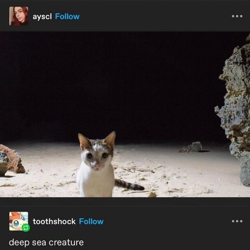 You have been visited by the Underwater Cat. He will appear once, and then never again. It's your only opportunity to pet this rare creature before he returns under the ocean for a slumber of another 1,000 years.