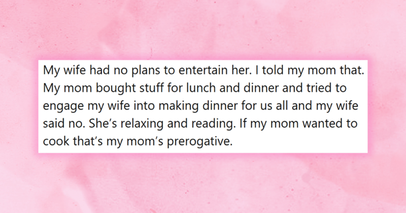 Mother Crashes Son’s Vacation, Demanding Daughter-In-Law Cook Dinner and Work on Her Time Off, Son Insists Mom Leaves in Response