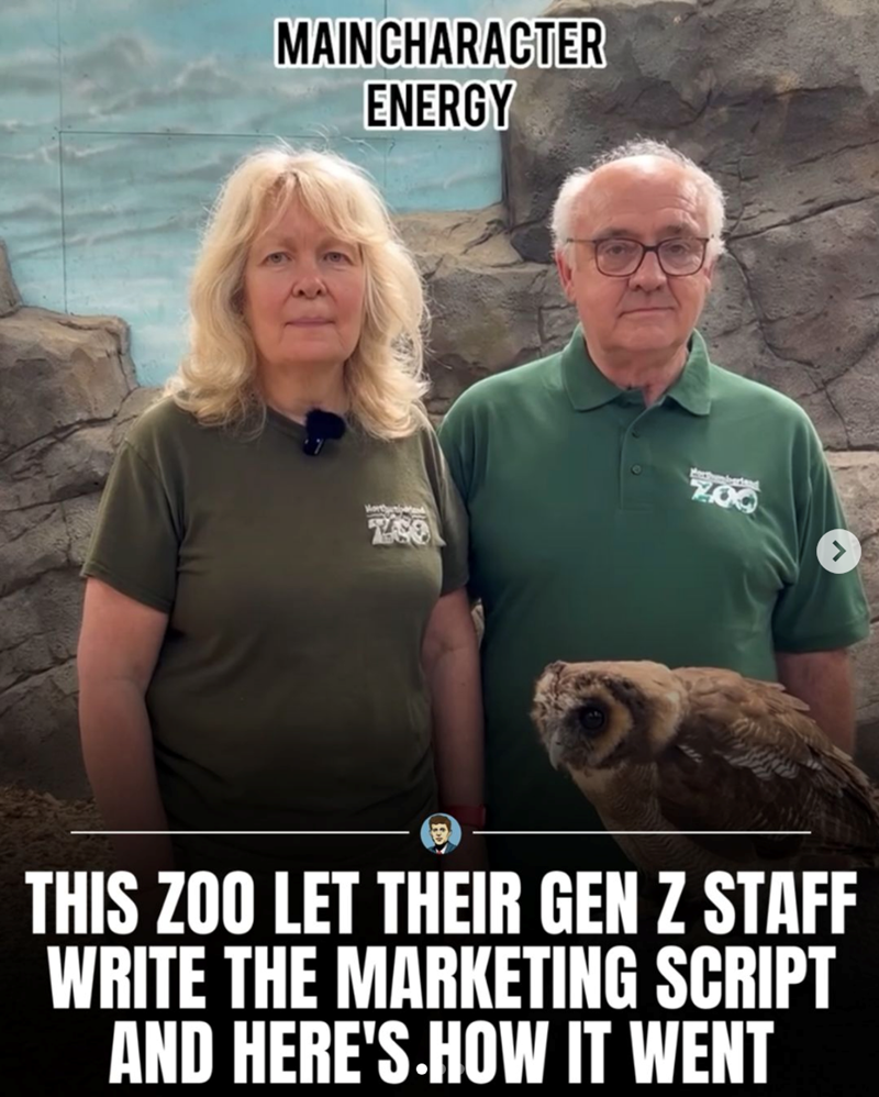 The screenshots really don't do it justice, you have to hear their delivery. Honestly, this is going to be us in about 40 years (we would love to work at a zoo and do silly social media videos at that age, why not?).
