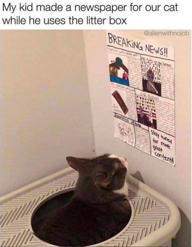 We don't know who we love more in this situation, the kid or the cat. So… we're going to say: the parents. Because someone had to teach the kid that this is a great thing to do, and someone had to hang this poster, and someone had to adopt the cat in the first place for this to happen.
