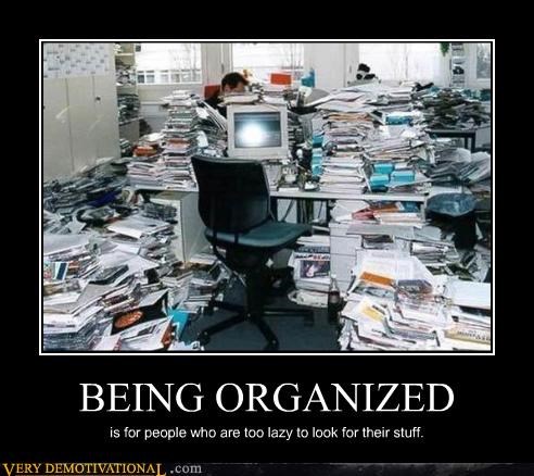 BEING ORGANIZED is for people who are too lazy to look fro their stuff.