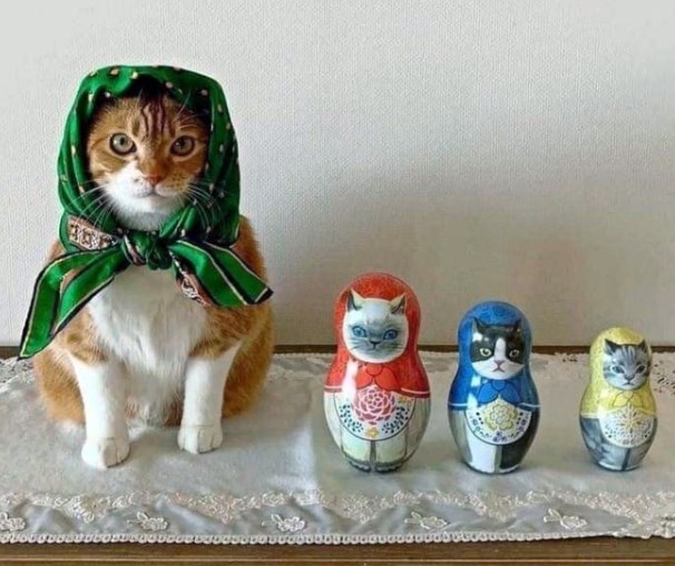 Russian culture loves cats, and they're the most popular domesticated animal there. How could they not? Just look at this purrfect creature, sending coqcat-tish glances to the camera, So much class!