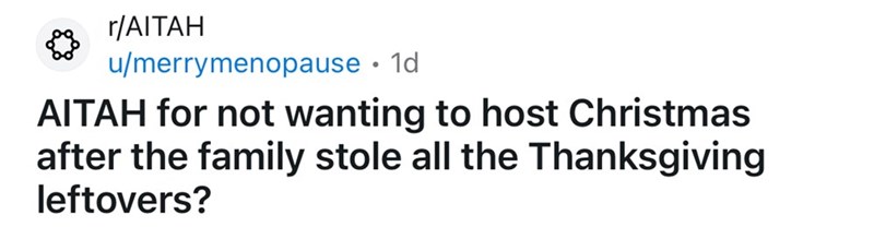 Woman Refuses to Host Christmas After Greedy Family Steals All the Thanksgiving Leftovers, Leaving Her Fridge Empty for the Holiday Weekend
