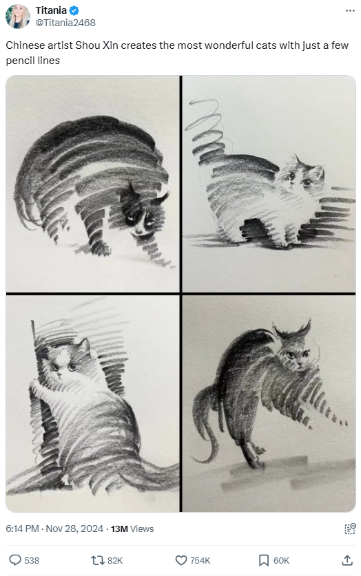 Oh yeah, "just a few pencil lines". So easy. We could definitely do this. This isn't like- one of the coolest and cutest things that we have ever seen. This person is an artist for a reason, and this… alright, fine, we might try to learn this.