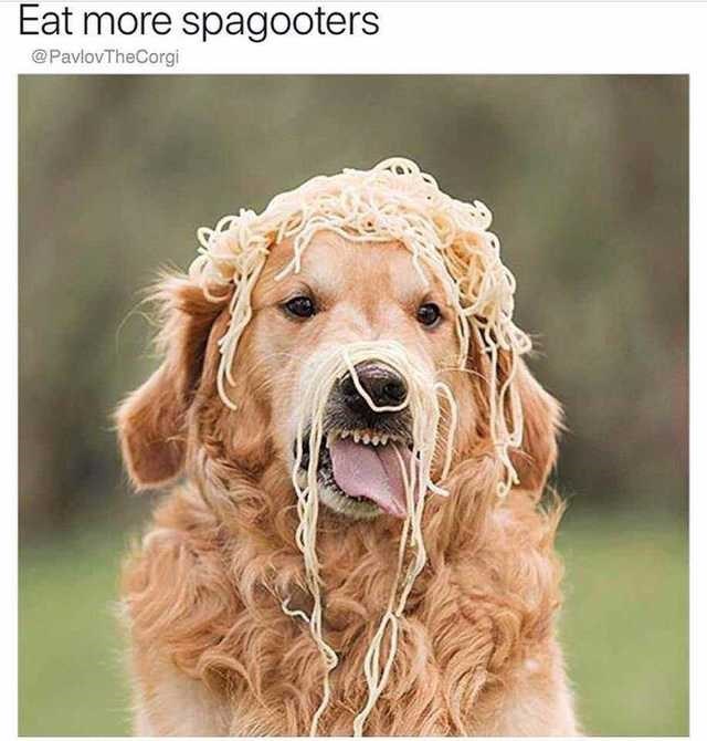 Do you remember the husky that cannot stop eating socks? "Give that sock, om nom nom, give me that sock, on nom nom!" - we'd want to have a part two with a Golden Retriever and his spagooters.