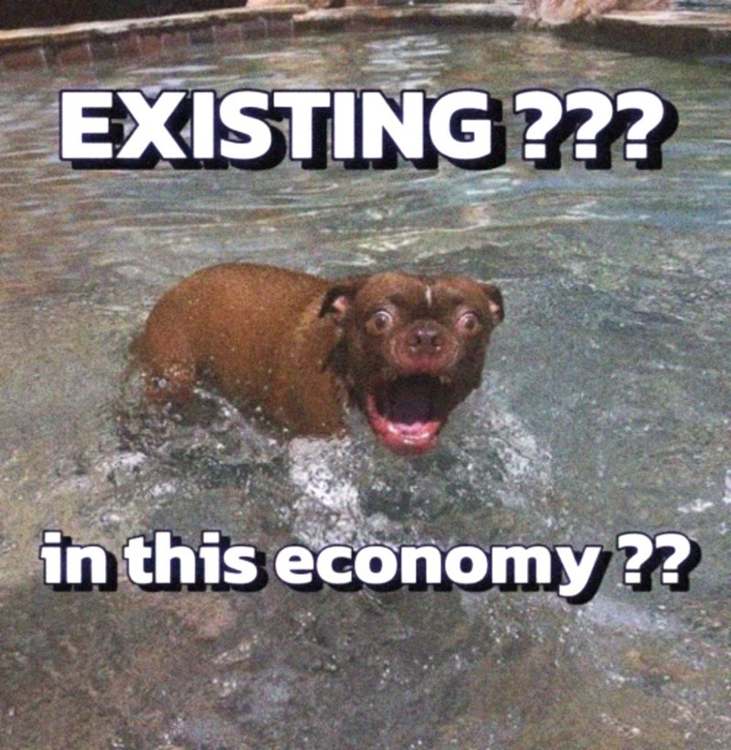 Honestly, in this economy, we don't blame bro. We sometimes find ourselves standing in place with this exact fact, asking whether this economy helping us exist or not. But then we remember we're a dog and we're running to fetch the tennis ball.