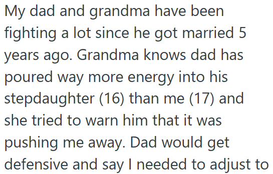AITA telling my dad not cutting off my grandma not treating my stepsister same as ?