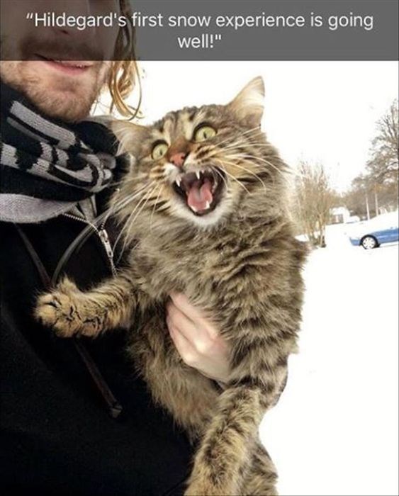 Sigh, winter. The best time for cats. When they are inside the house. Inside, they are comfy and warm under their fluffy blankets, and they can cuddle with us as much as they feel like. But outside… outside, usually, this happens.