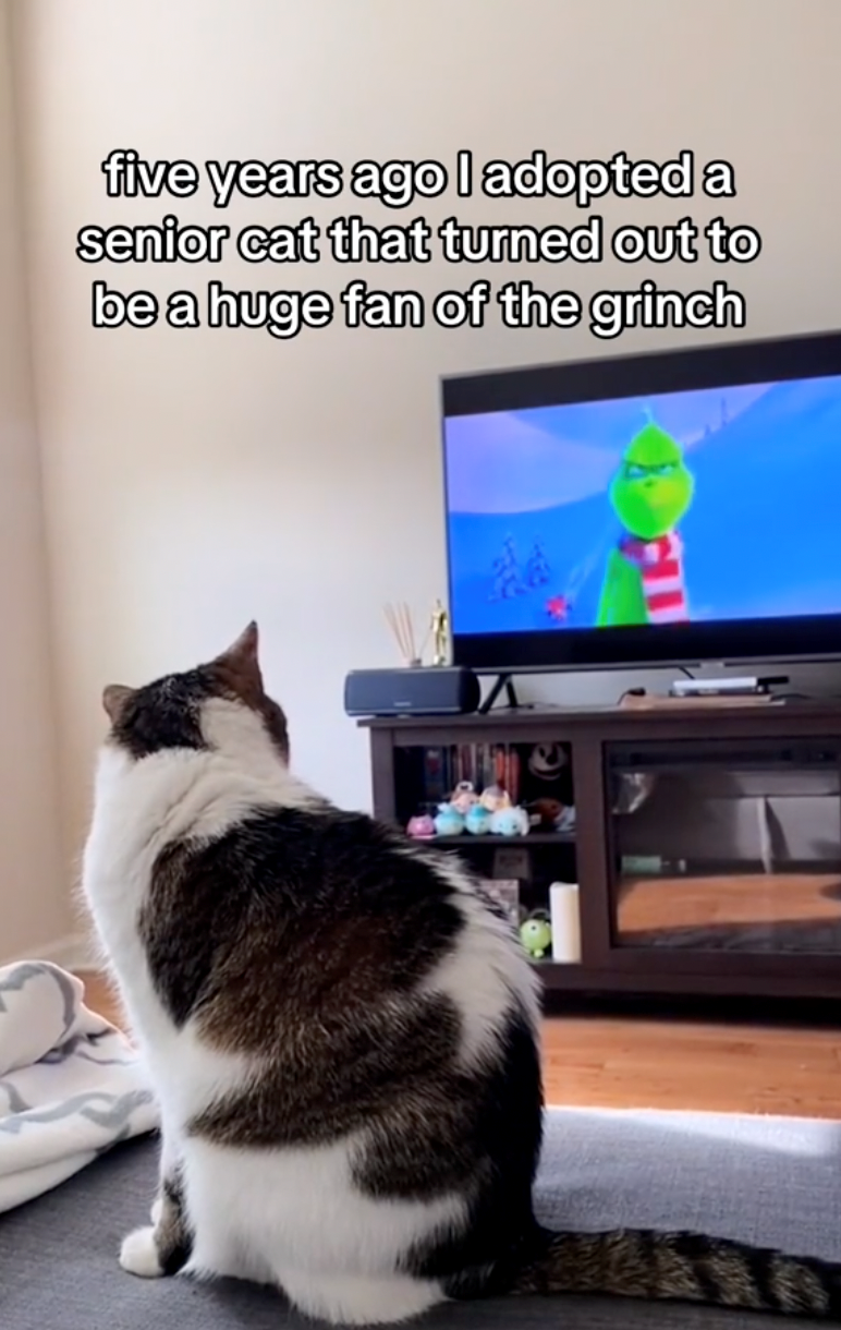 Senior Cat Obsessed with 'The Grinch' Gets Giant Plush Grinch Pillow Just In Time for the Holidays, Goes Viral